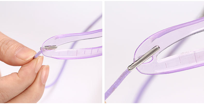 사이즈 조절이 가능한 헤드로프를 눈썹 가이드에 끼워 머리에 착용하여 손에 들고 있지 않아도