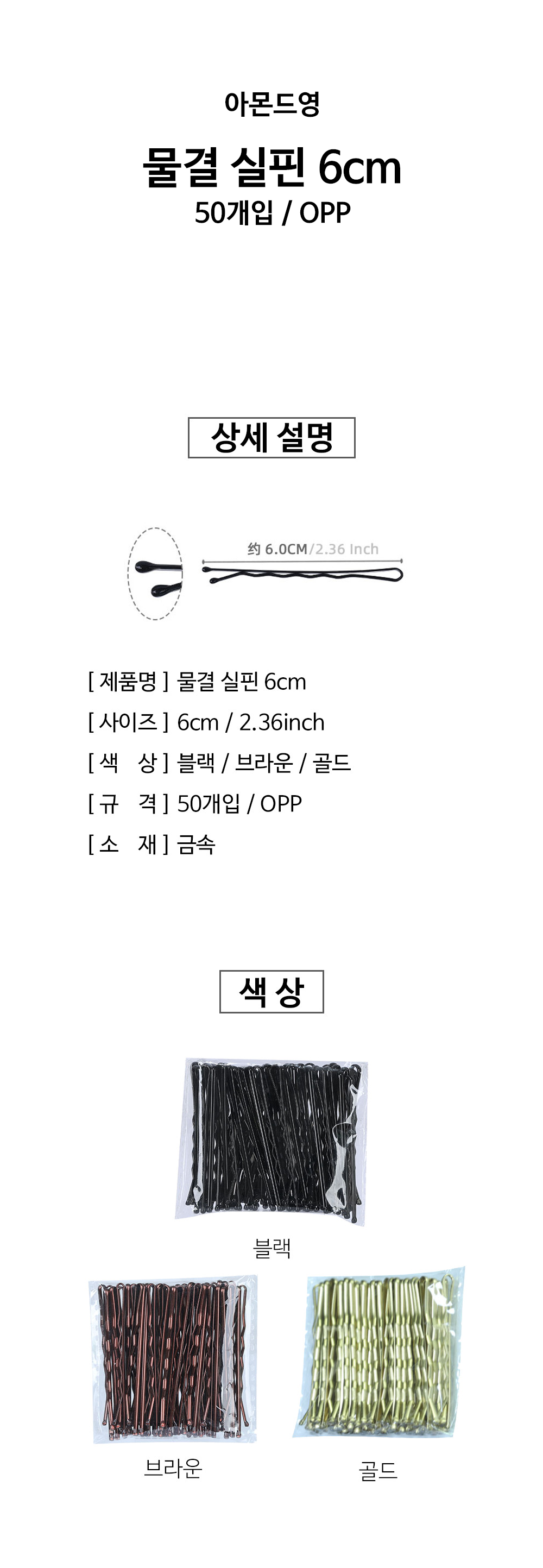 6cm 실핀 50개입 | 아몬드영