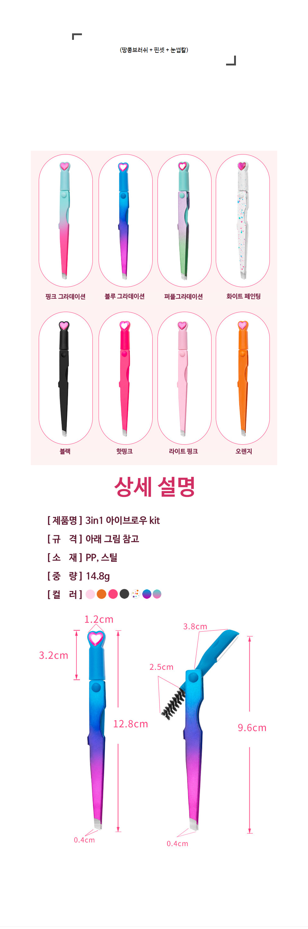 3in1 땅콩브러쉬 눈썹칼 핀셋 멀티 세트 | 아몬드영