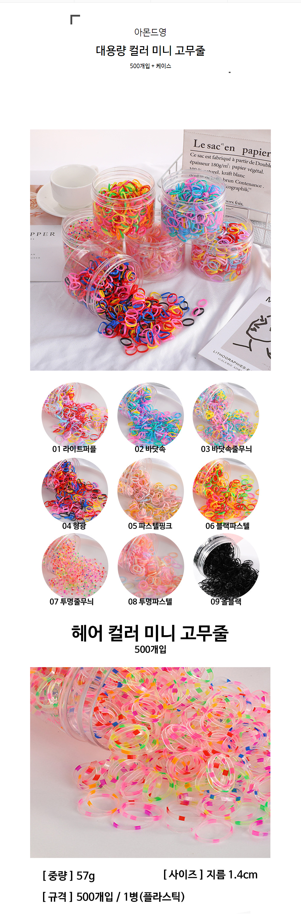 미니 컬러 고무줄 500개입 | 아몬드영
