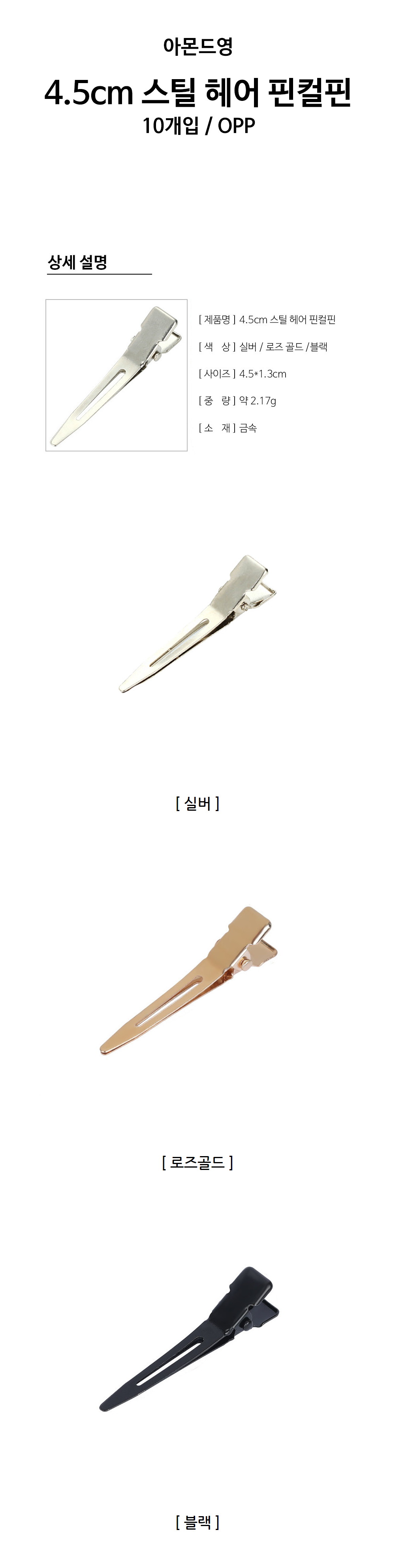 4.5cm 스틸 헤어 핀컬핀 10개입 | 아몬드영