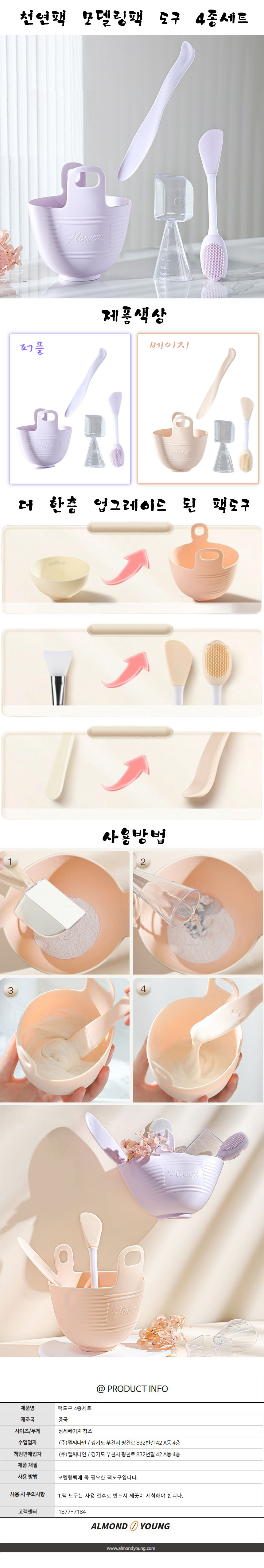 고급 천연팩 모델링팩 도구 4종 세트 | 아몬드영