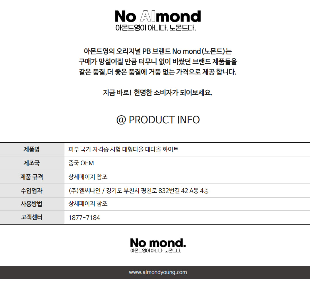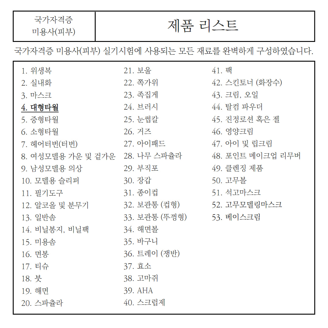 피부 국가 자격증 시험 대형타올 대타올 화이트 | 아몬드영