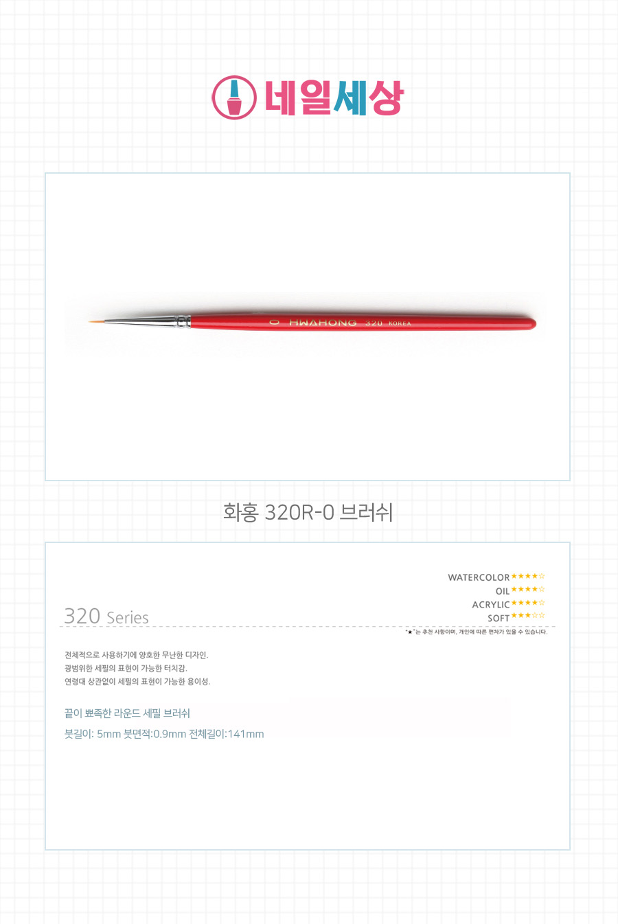 화홍 세필 브러쉬 320-0호 포인터(라이너) | 아몬드영