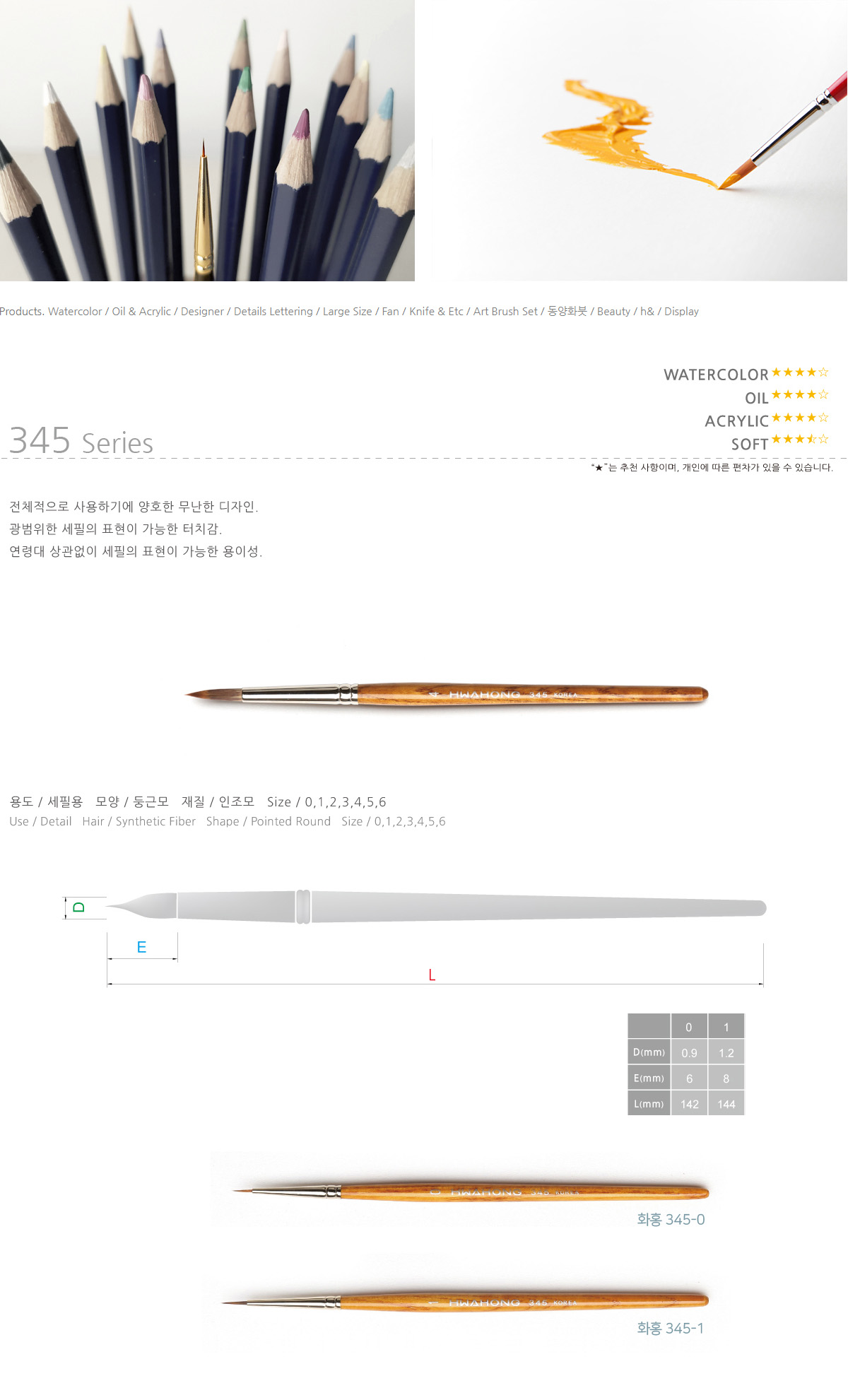화홍 세필 브러쉬 345-0호 포인터(라이너) | 아몬드영
