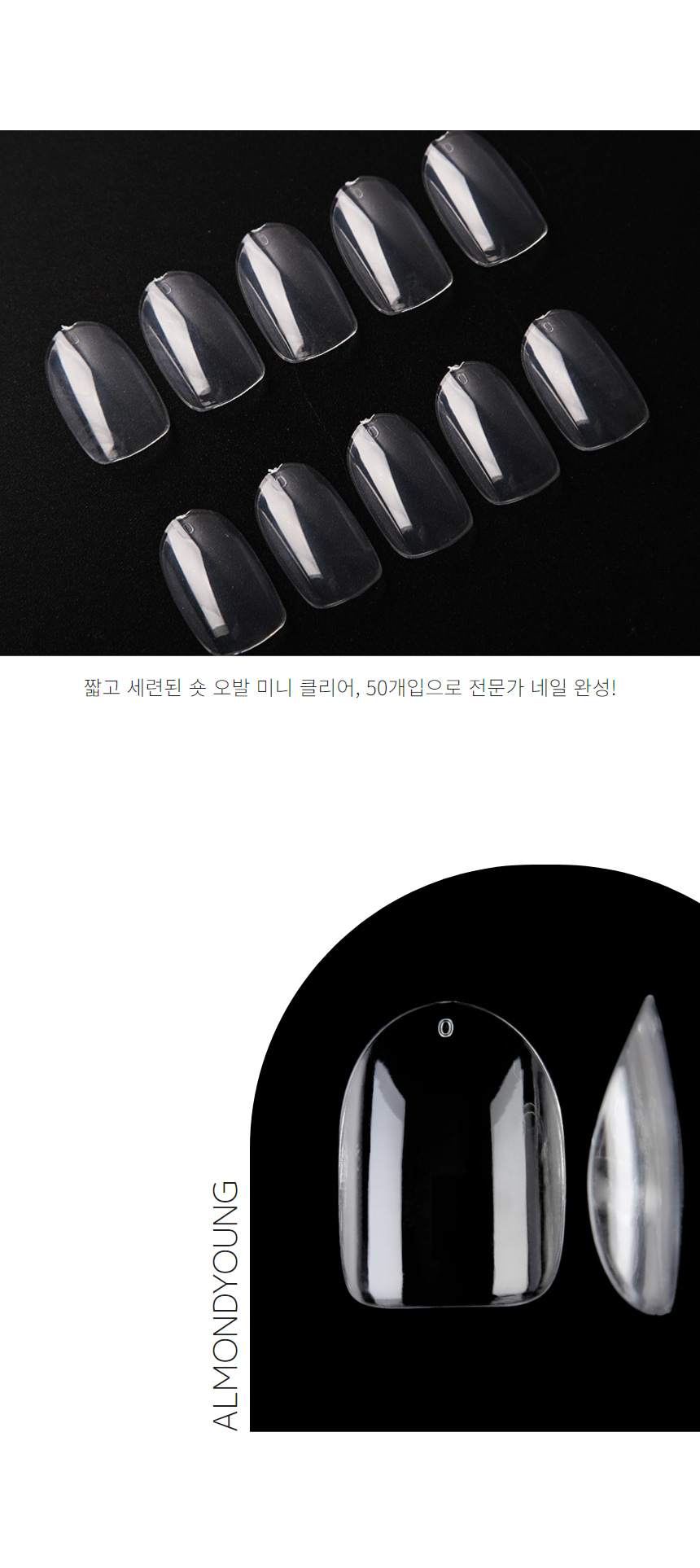 네일아트 네일팁 리필팁 숏 오발 미니 클리어 50개입 | 아몬드영