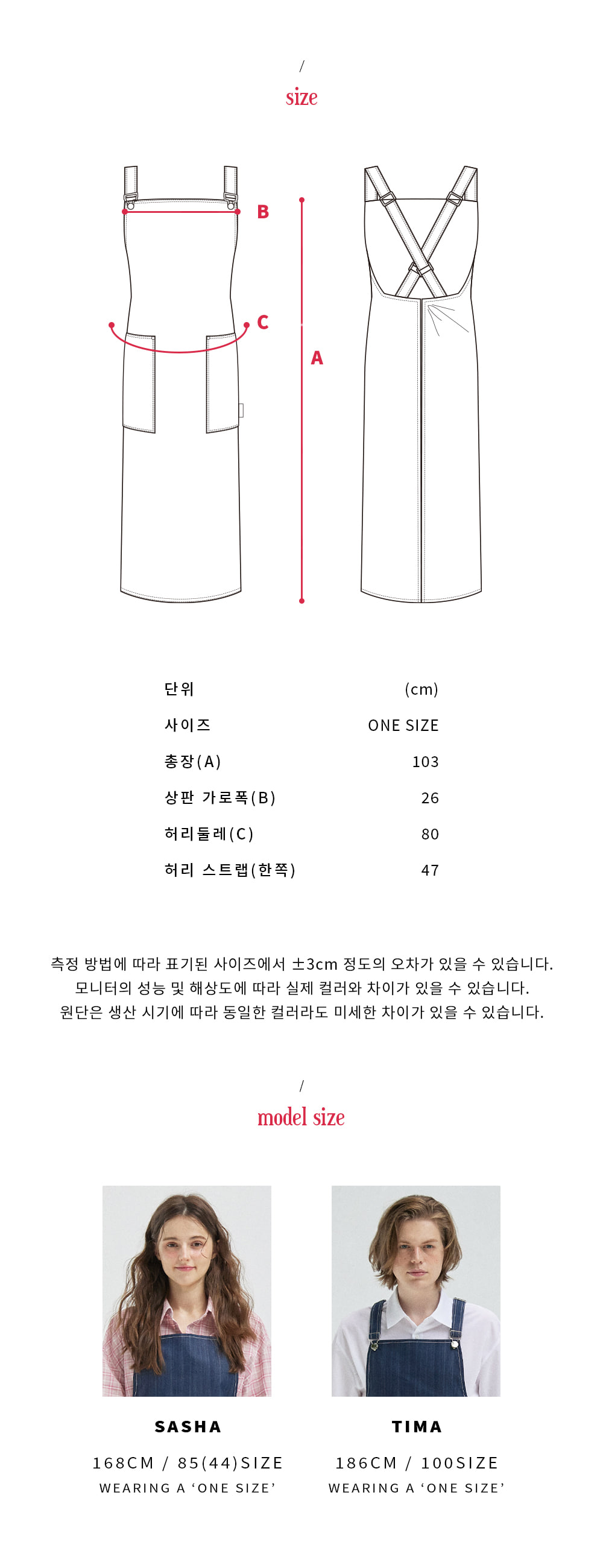 (UNISEX)데님 멜빵 베이직 DENIM SUSPENDER BASIC APRON | 아몬드영