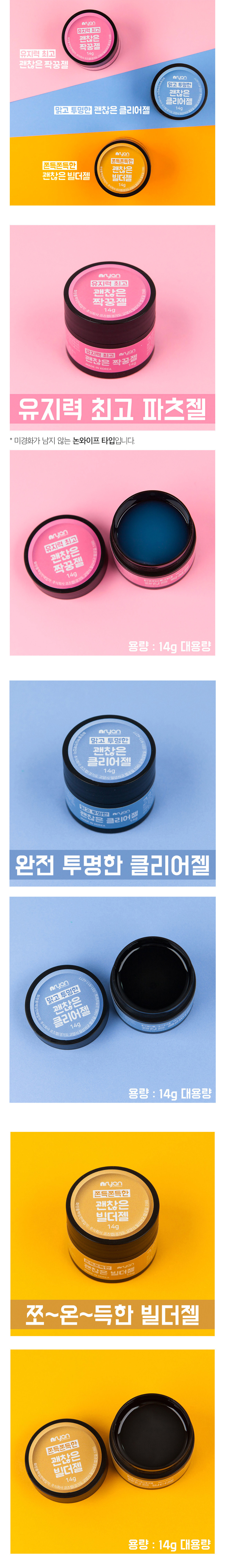 NRYAN 엔리안 괜찮은 짝꿍젤,클리어젤,빌더젤 3종 대용량 14g | 아몬드영