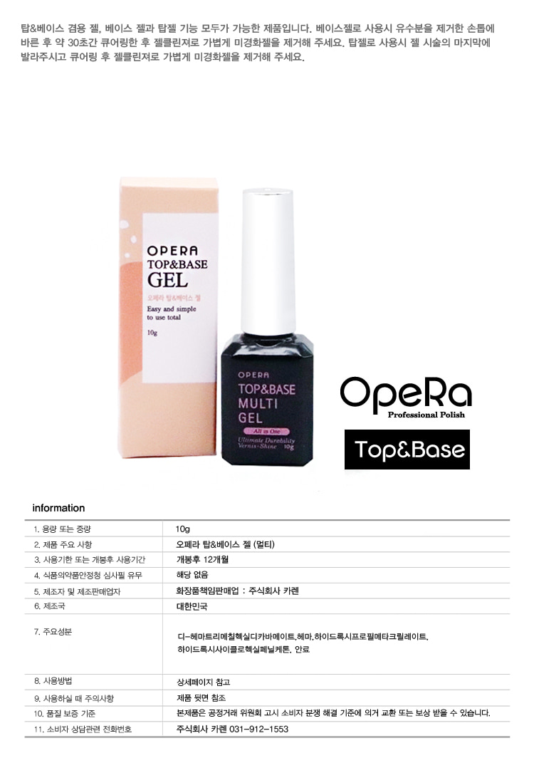 OpeRa Gel Polish 오페라 탑&베이스 젤 | 아몬드영